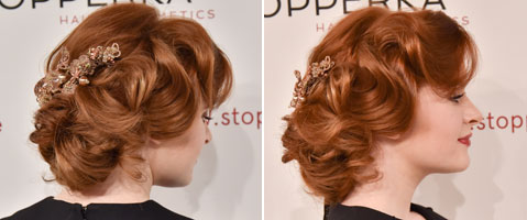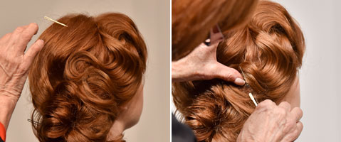 Hochsteck Koryphäe Sharon Blain´s beweglicher Galalook à la Hollywood. Wasserwelle, fixiert mit Nadel und Faden ... Wir waren beim Workshop für STOPPERKA in Hamburg live dabei.