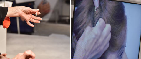 Step 12| Das Wellental mit einem transparenten Nylonfaden an der Kopfhaut festnähen
