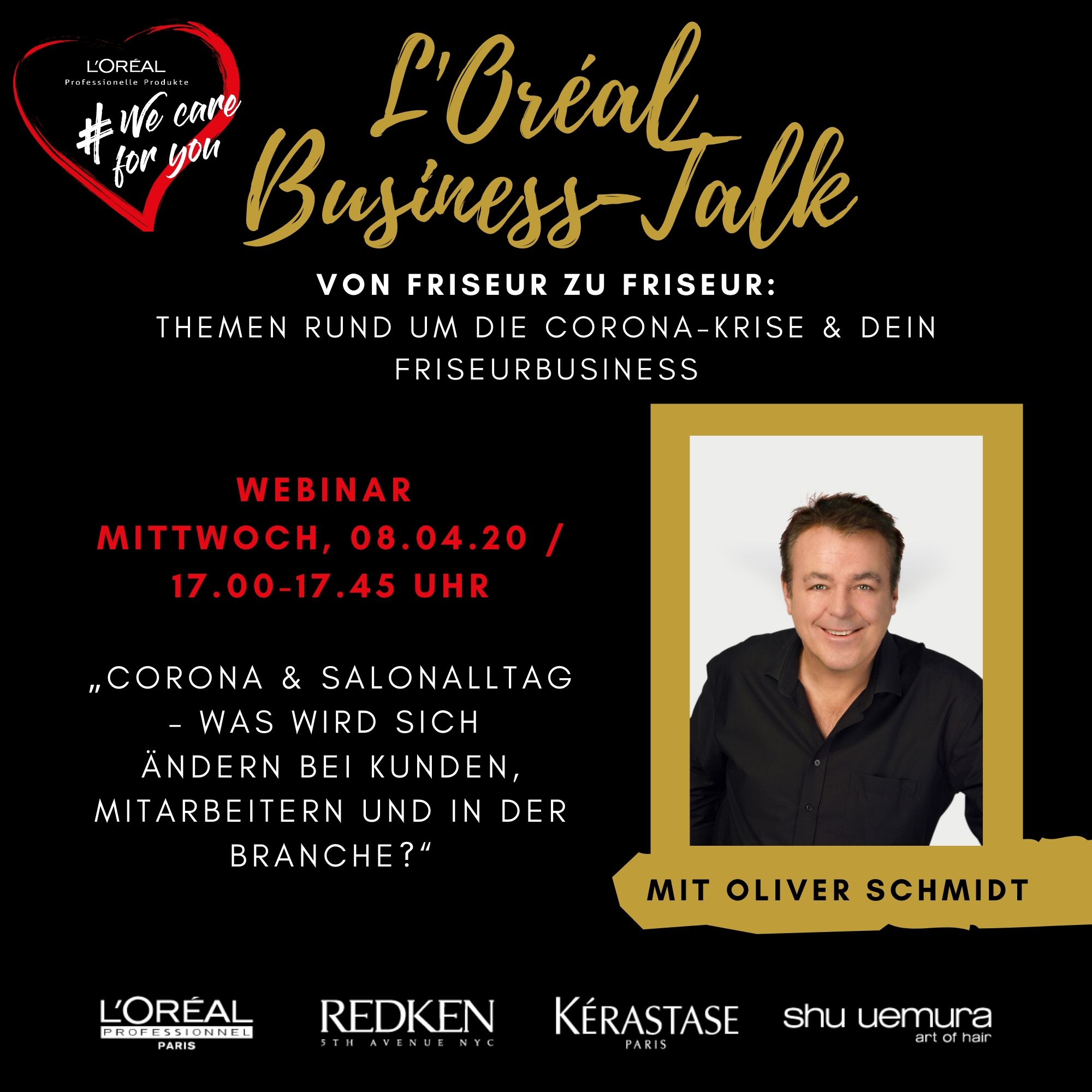 Der nächste L’Oréal Businesstalk findet am Mittwoch, 08.04. von 17-17.45 Uhr statt. Oliver Schmidt, Düsseldorf wird sich mit folgendem Thema auseinandersetzen: „Corona & Salonalltag! Was wird sich ändern bei Kunden, Mitarbeitern und in der Branche?“
