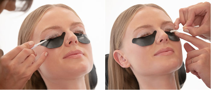 Den Augenbereich mit RefectoCil Augen Make up Entferner und Kochsalzlösung reinigen und die unteren Wimpern mit den RefectoCil Silicone Pads abdecken – denn nur die oberen Wimpern werden geliftet!