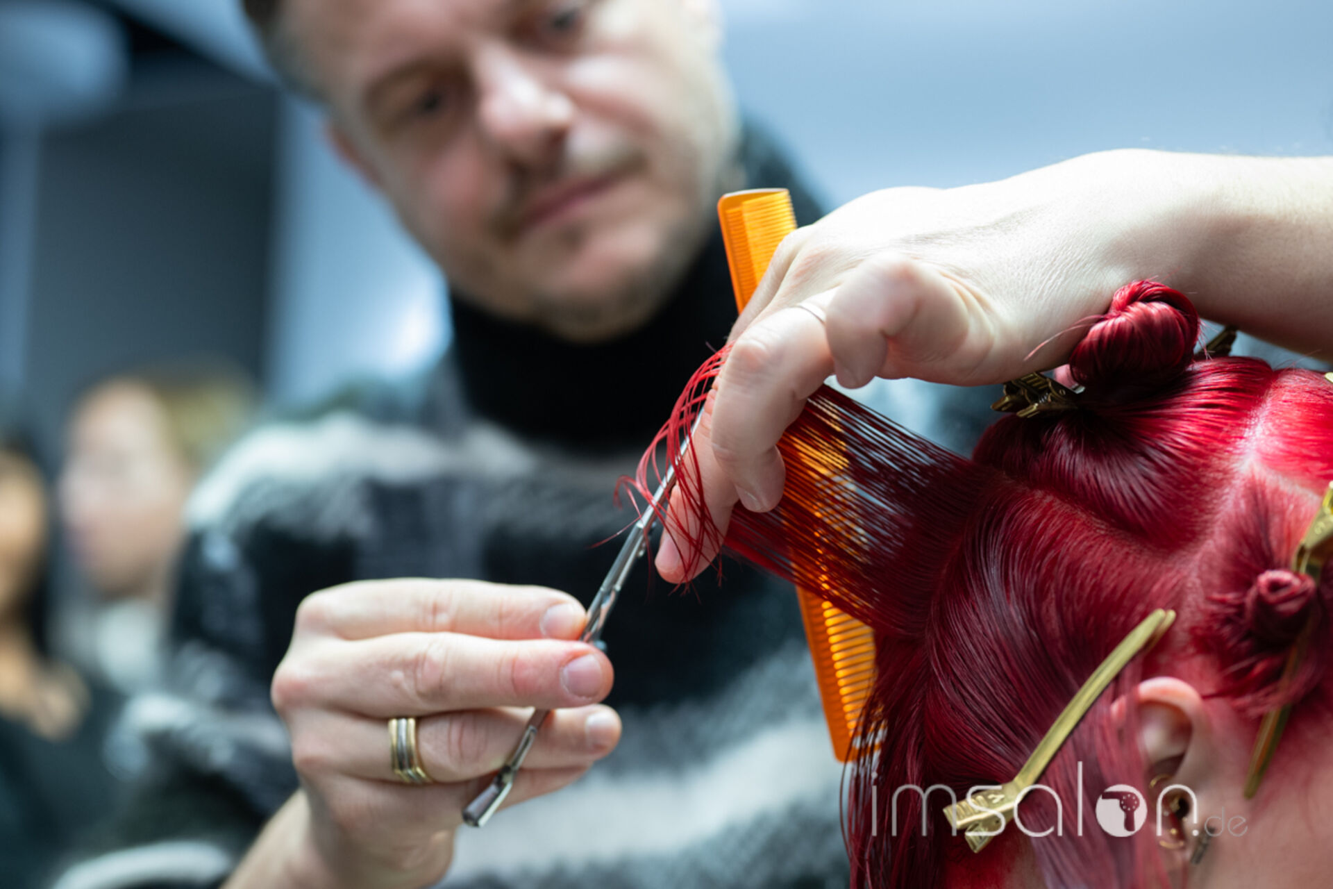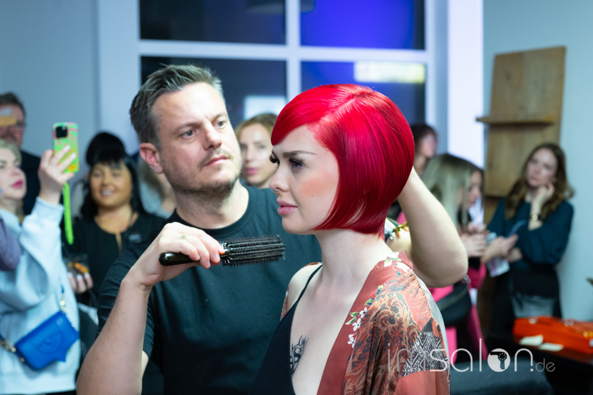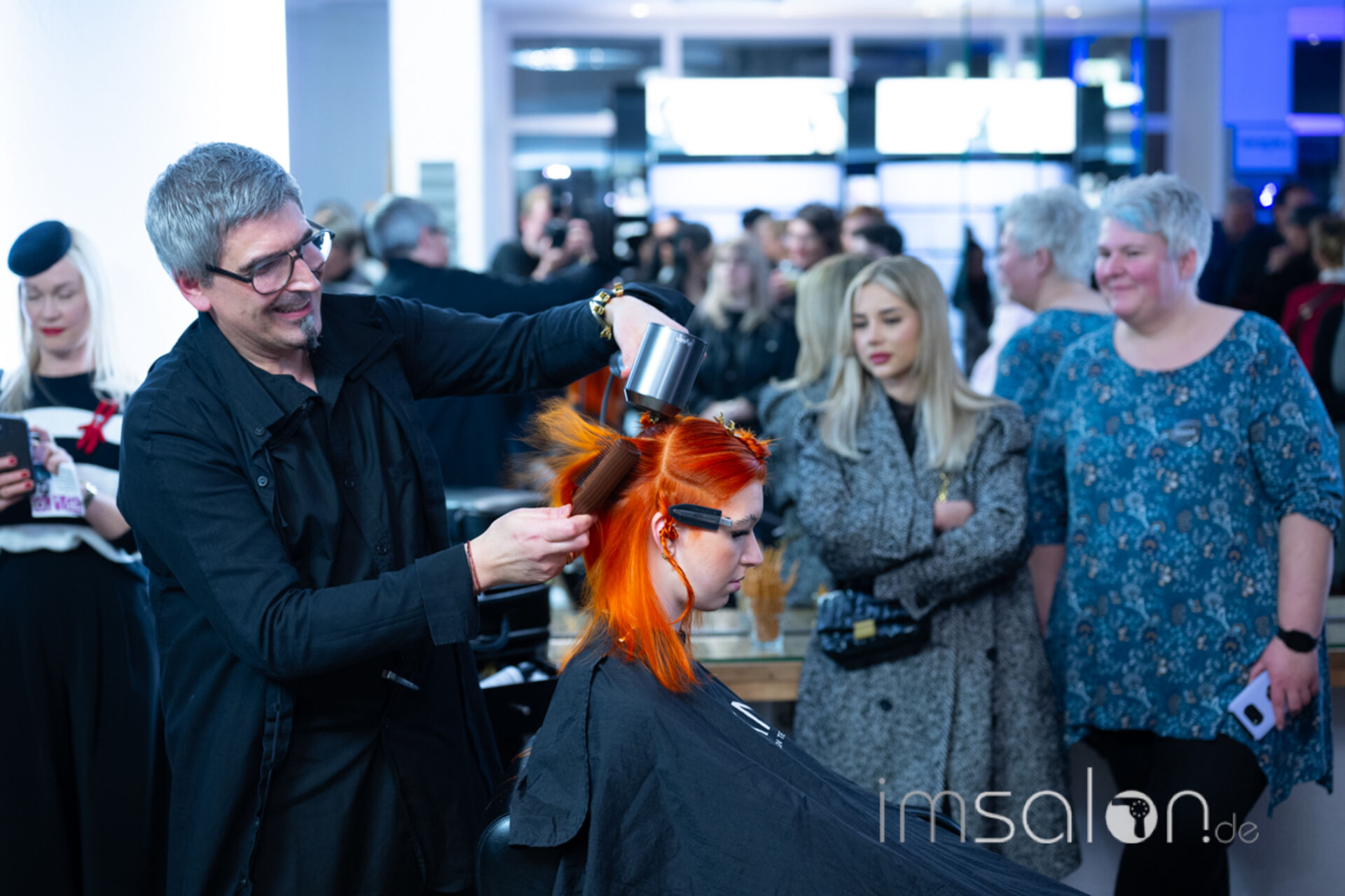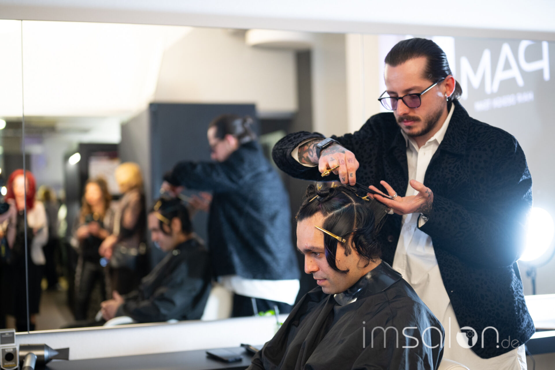 ►Mandy van den Bosch-Macri, Pietro Macri und JB Mazella (►Mazella & Partners) schnitten und stylten live an Modellen, während die Gäste ihnen unmittelbar auf die Hände schauten und mit ihnen direkt in den Austausch treten konnten.