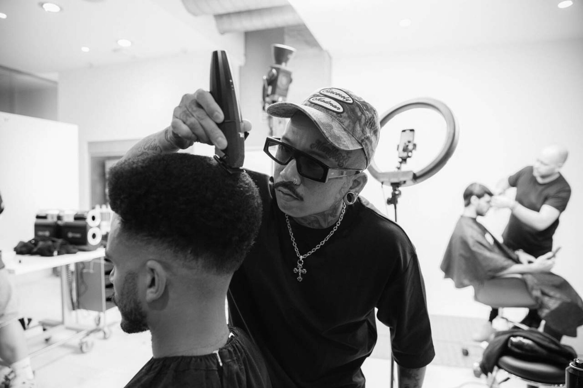 Baggy Hosen, Mützen, Caps, Tattoos, große Sonnenbrillen – das gab es beim STMNT Summit in Barcelona viel zu sehen. Was es sonst Spannendes zu entdecken gab? Im Austausch mit der STMNT Community fiel im Zusammenhang mit Trends häufig die Wörter „Mullet“ und "Male Grooming".  Aber auch Mittelscheitel, Wolf Cut, Locken (egal ob Natur oder Dauerwelle) hörte man oft.