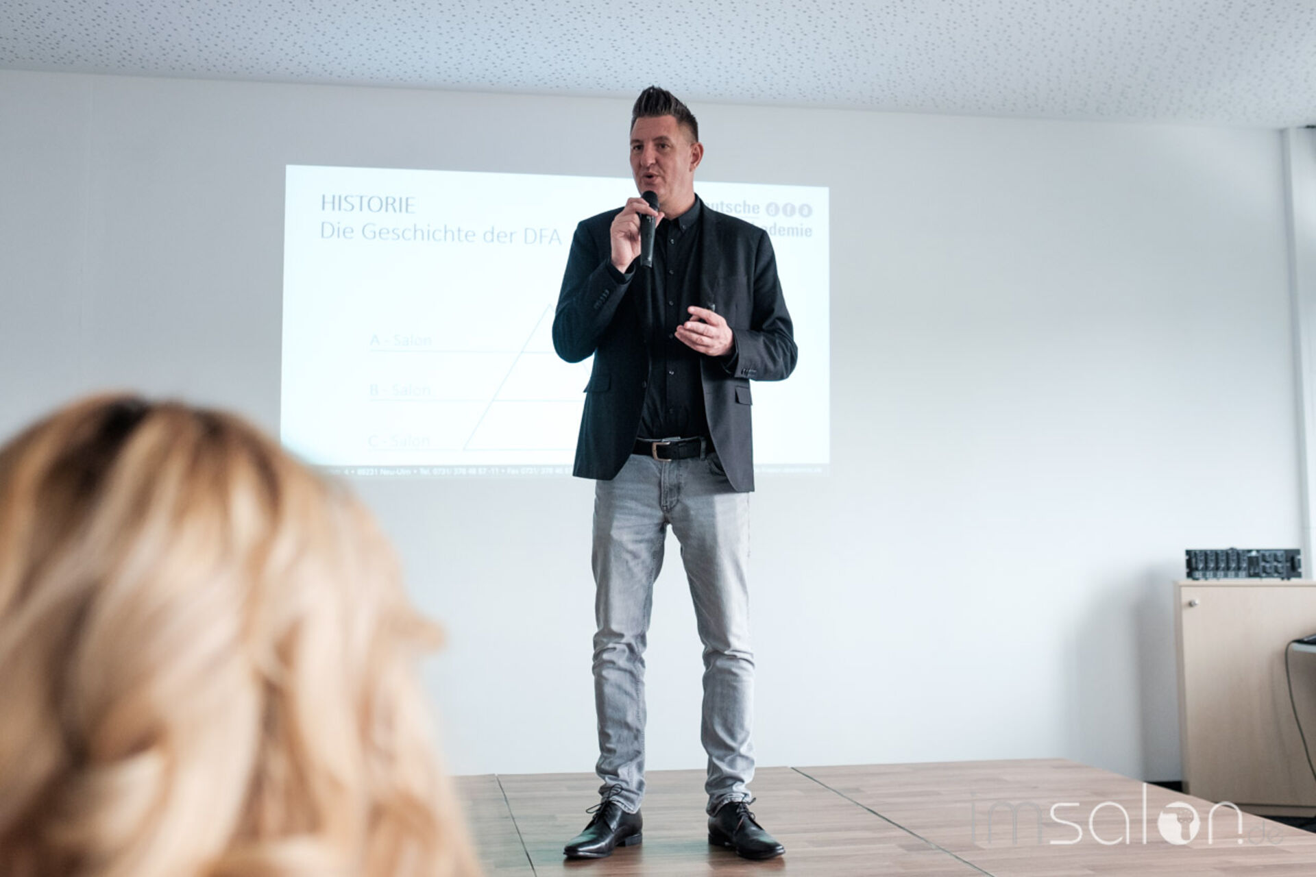 Harald Gloning, Geschäftsführer der dfa, hieß die Gäste Willkommen und gab Einblicke ins dfa Aus- und Weiterbildungsporfolio. Ob Friseur- und Kosmetikmeister, Friseur-Trainer oder Spezialist in Sachen Farbe, Barber, Hochstecken oder Zweithaar und und und - alles dabei. Alles spannend.