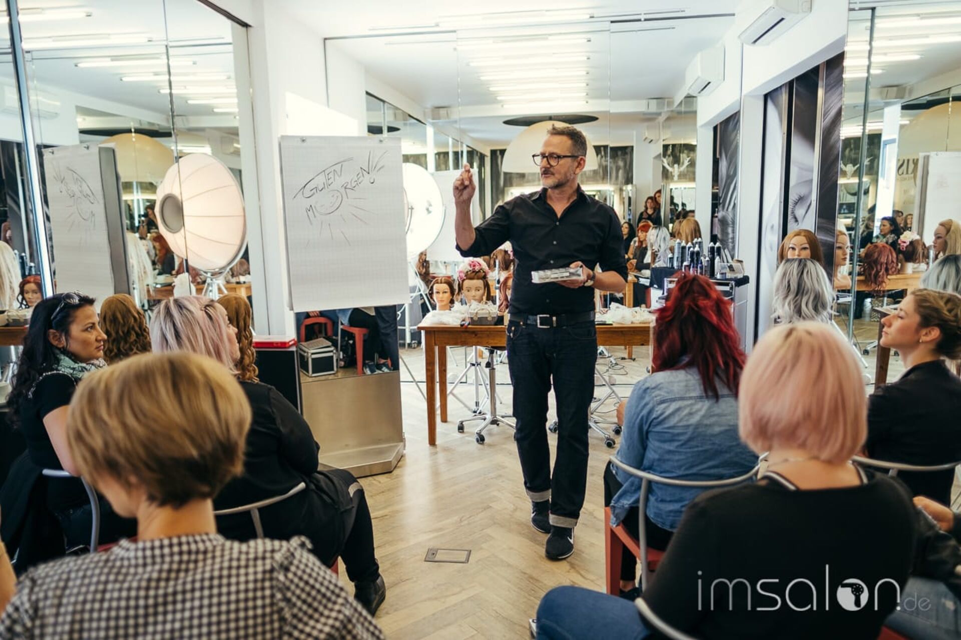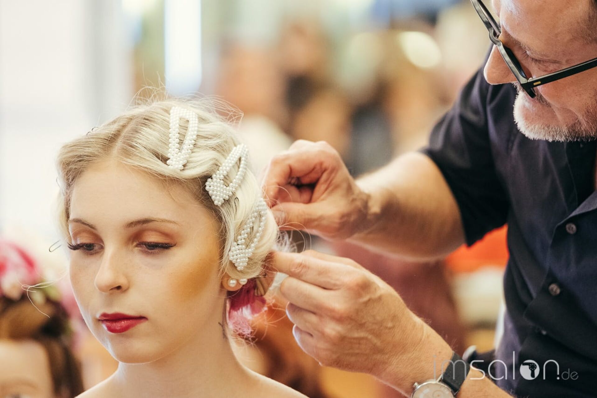 In seinem Dresdner Salon Coiffure Suchomel & Bohm, den er gemeinsam mit Frank Bohm führt, empfängt er um die 20 Friseure zu einem Upgrade in Sachen Hochzeit, Ball & Co. Auf dem Schulungsplan: ESTEL's Longhair.Master. Ein lehrreiches Seminar mit 3 frischen UpDo´s, die im Look&Learn präsentiert und anschließend hautnah an Trainingsköpfen umgesetzt werden.