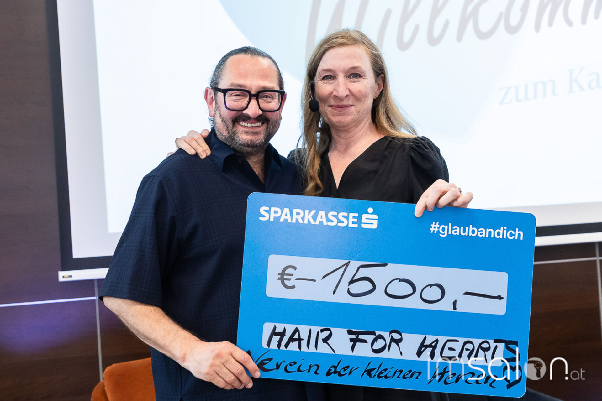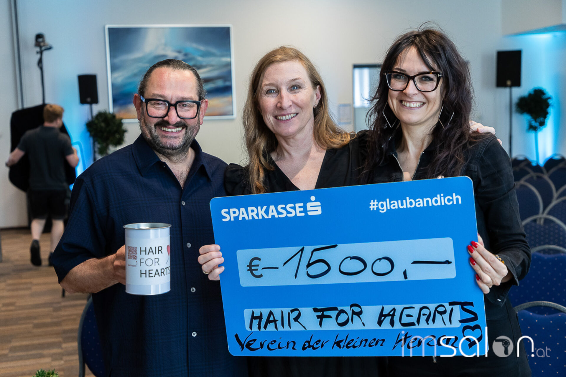 Die große Überraschung ... Mario Krankl unterstützt seit der imSalon Messe Wien, die von imSalon ins Leben gerufene Charity Aktion für Kriegswaisen aus der Ukraine ► HAIR for HEARTS. Im Salon sammelt Mario Krankl fleißig weiter und hat erneut 1.500 € zusammengetragen, die imSalon Chefredakteurin Raphaela Kirschnick im Zuge des Events übergeben wurden.