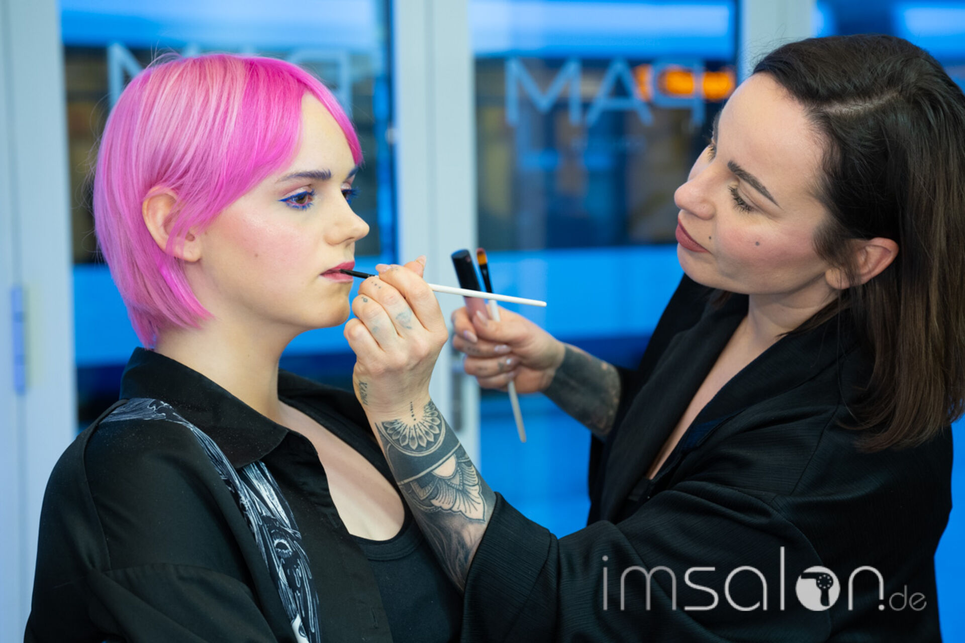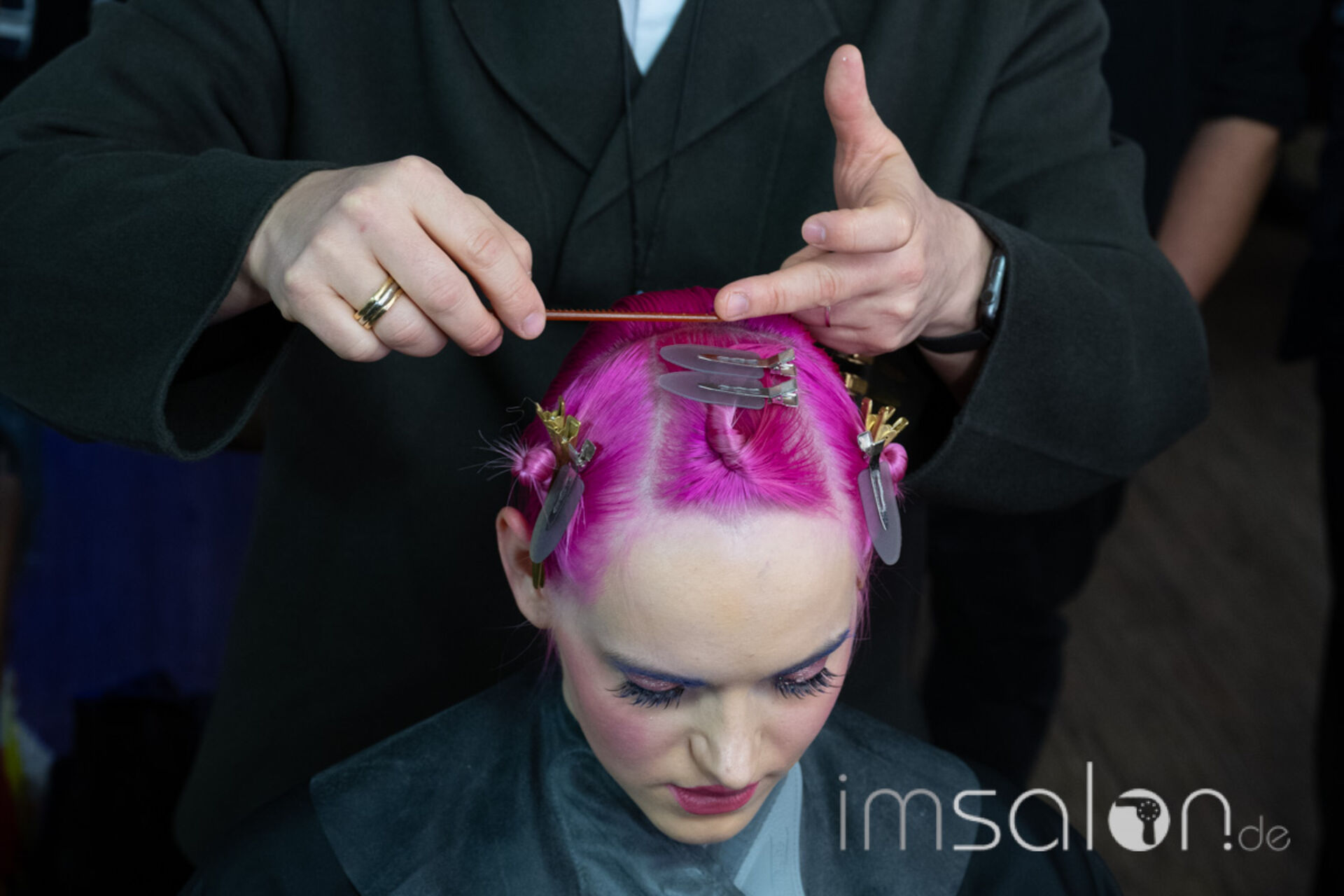 - Das PAM Artistic Team – Pietro Macri, Sandra Schütz und Benny Zent – sowie Redken-Akteur Lars Zivus begeisterten mit einer Schnitt-Extravaganza: Messerschnitt, präzise Linienführung und mutige Disconnection an ihren Workstations. Und weil ein Look erst im Zusammenspiel wirklich wirkt, durfte auch Make-up nicht fehlen – es gehört einfach dazu.