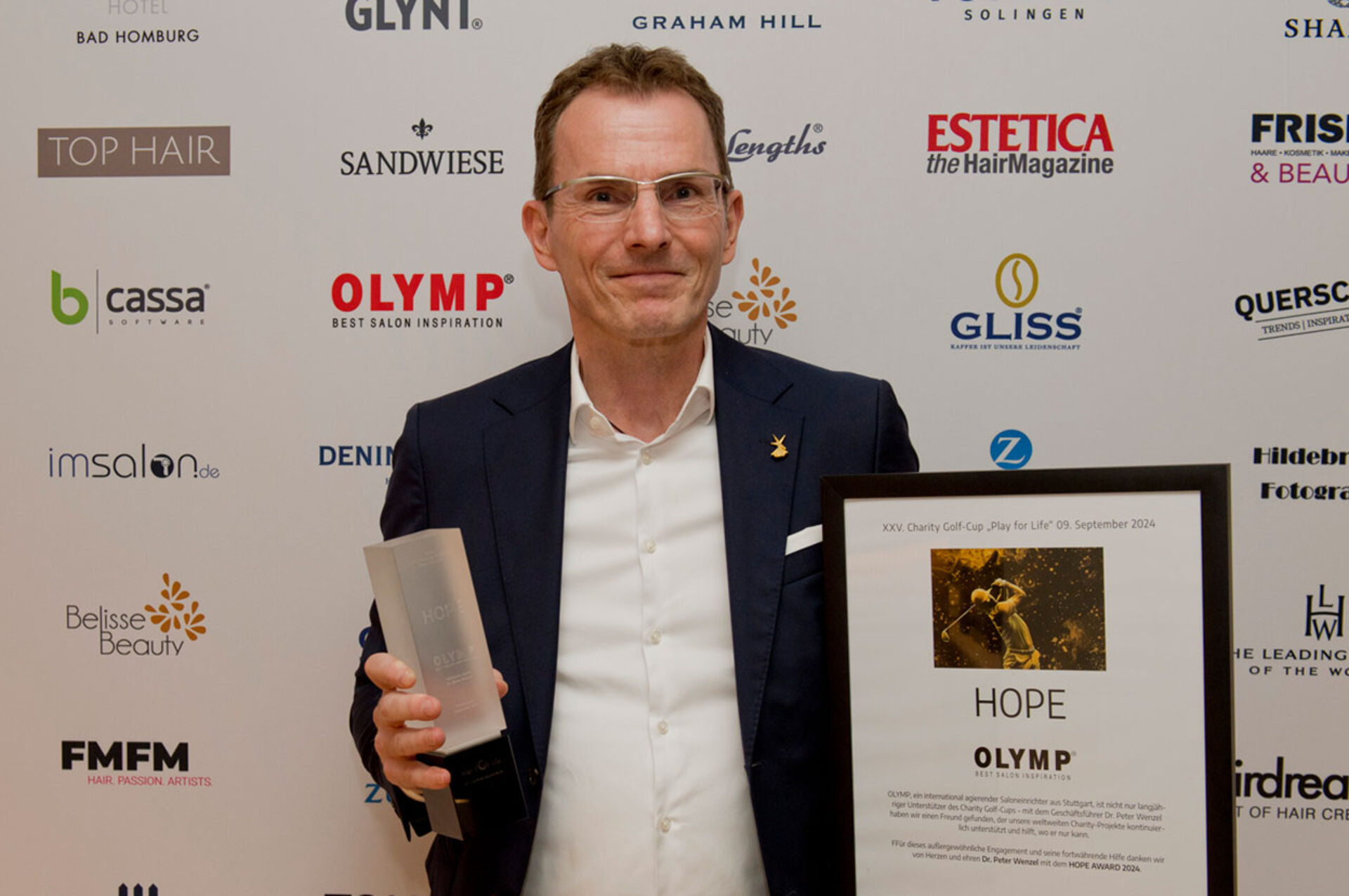 Jens Dagné eröffnete den festlichen Abend im Restaurant des Golfparks Löwenhof, bei dem nicht nur die Sieger des Turniers, sondern auch verdiente Sponsoren und Unterstützer gewürdigt wurden. Ein besonderes Highlight war die Verleihung des „HOPE- Preises“, der an Persönlichkeiten geht, die unsere „Education for Life“- Projekte tatkräftig unterstützen. Dieser ging in diesem Jahr an Dr. Peter Wenzel, Geschäftsführer von OLYMP.
