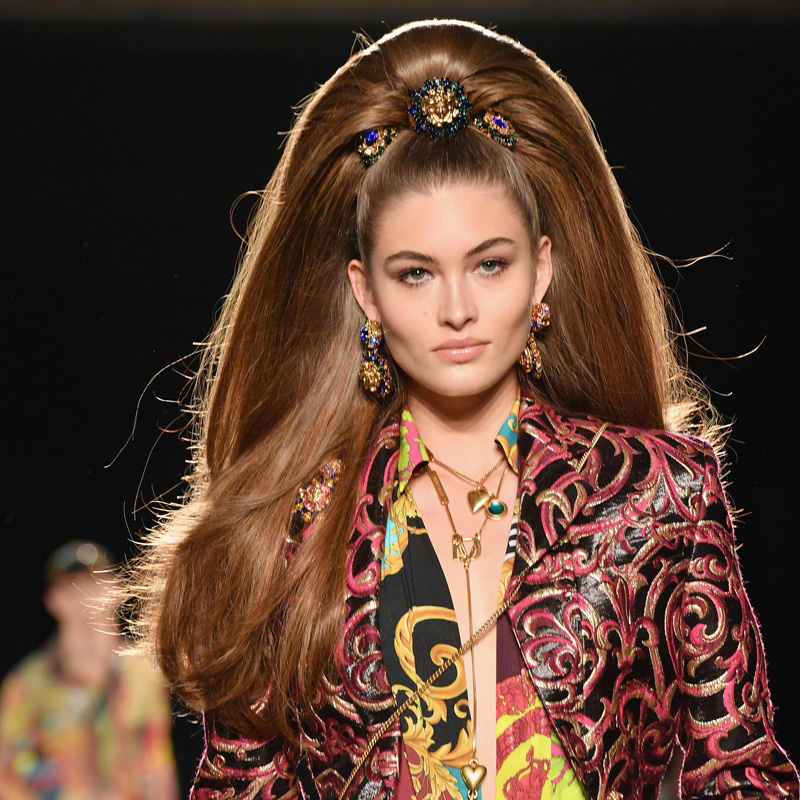 High Ponytail und Hair Jewels bei Versace