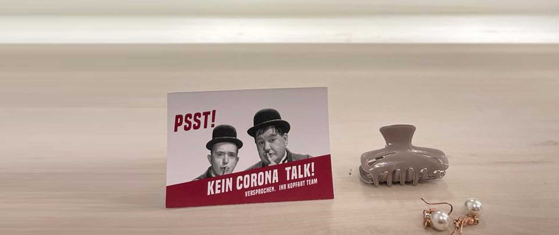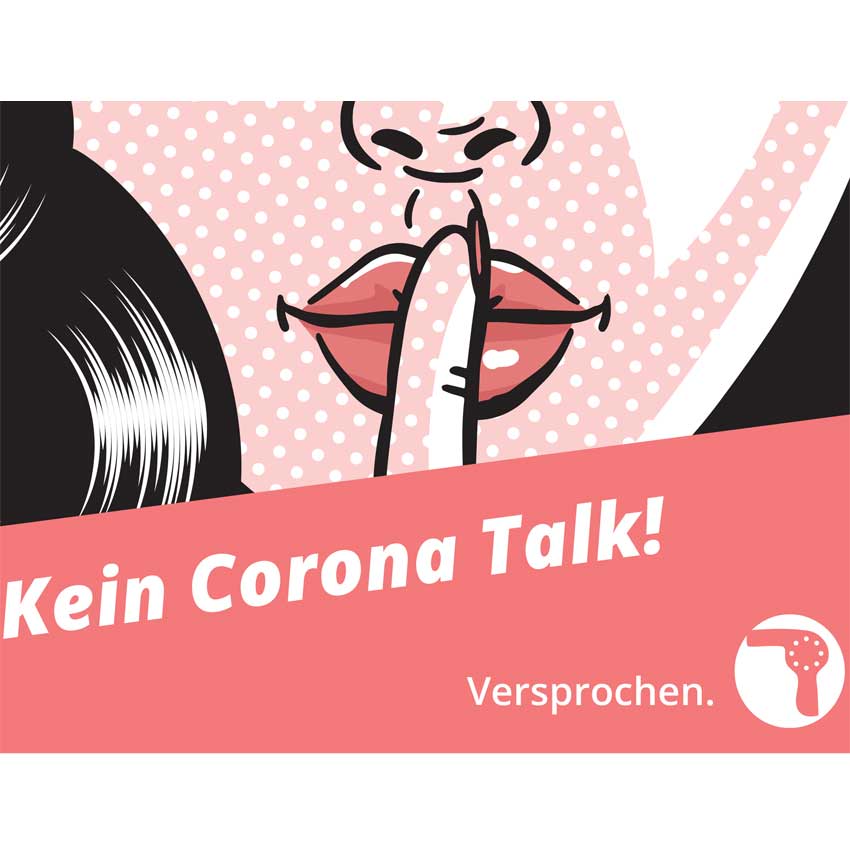 "PSST! Keine Corona Gespräche im Salon"